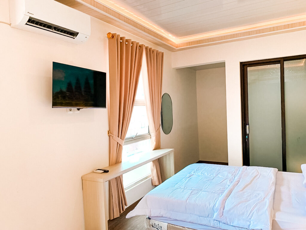 Semua sudah dilengkapi : Wifi 100 mbps Water heater Netflix Unlimited Kamar mandi dalam Meja kerja Lemari Head Lamp Vnyl Premium TV Samsung 32inch AC Daikin King bed Alga 160 x 200