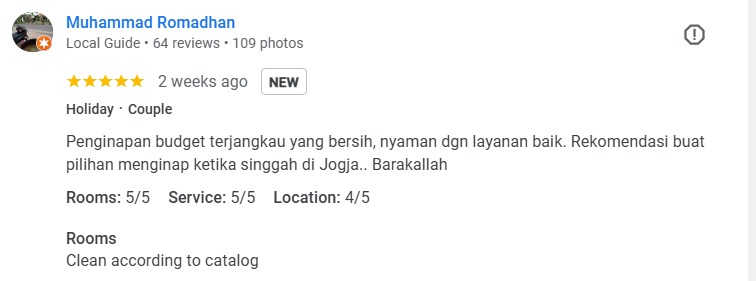 Ini real Jogja tetap istimewa Masya Alloh walau 2 hari singgah tapi tempat sangat nyaman sekali RATING 5 buat Kartiko Palagan..